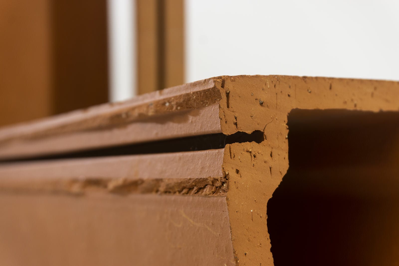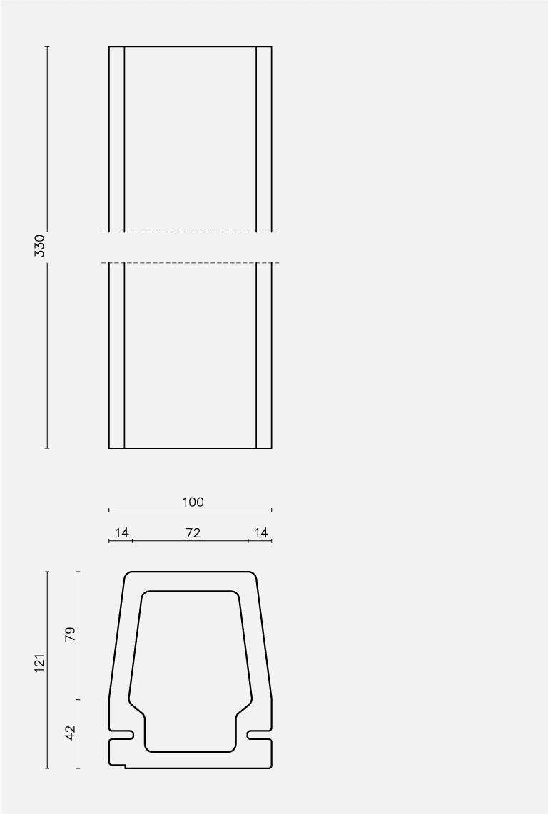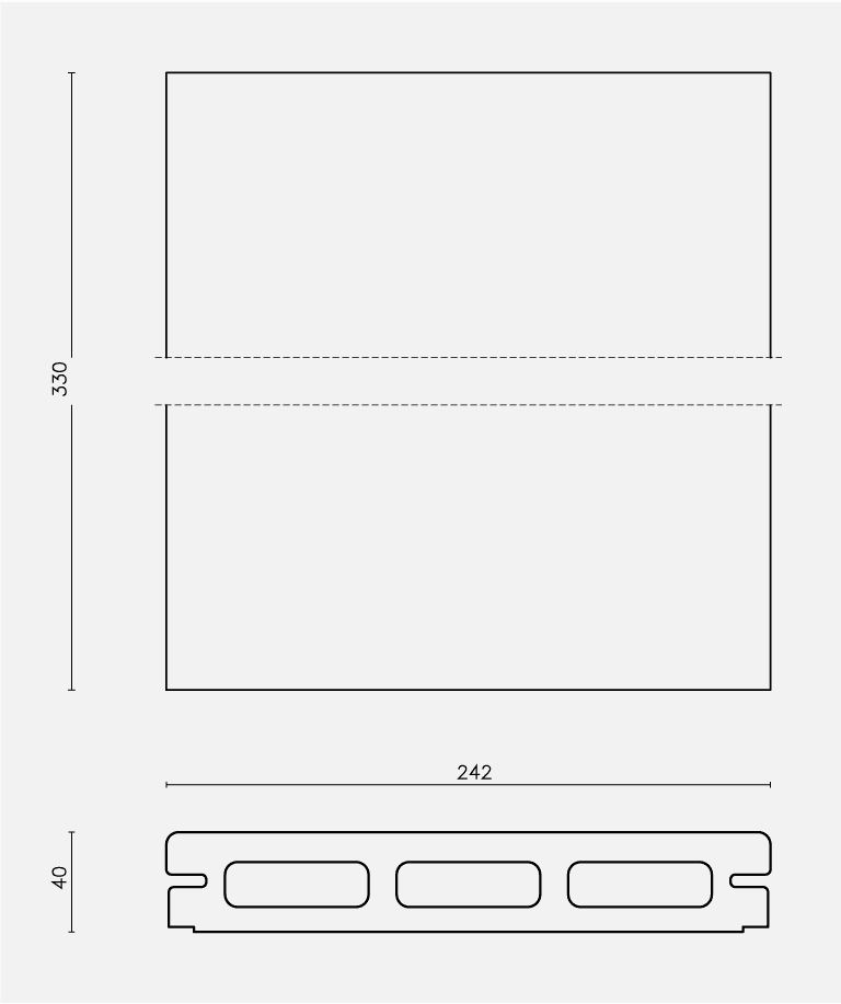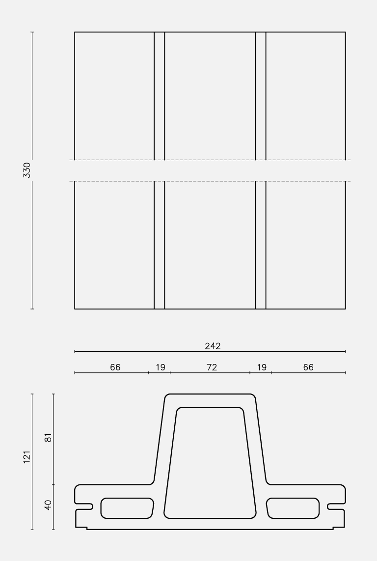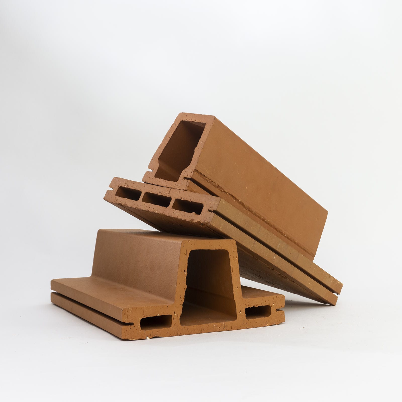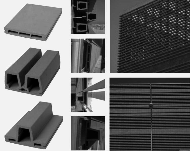 Ceramic piece. The exterior cladding of the entire building is made of ceramic pieces of local tradition. We designed specifically for this building two different ceramic pieces of big size: one is flat and the other is T-shaped. The combination of the two pieces has solved the various requirements concerning the different facades. An enclosure which is a delicate envelope of horizontal slats and allows to unify all the facades, including the roof, with the widespread use of a single material, but at the same time and depending on weather conditions and of natural light, would provide changing images for the same facade.