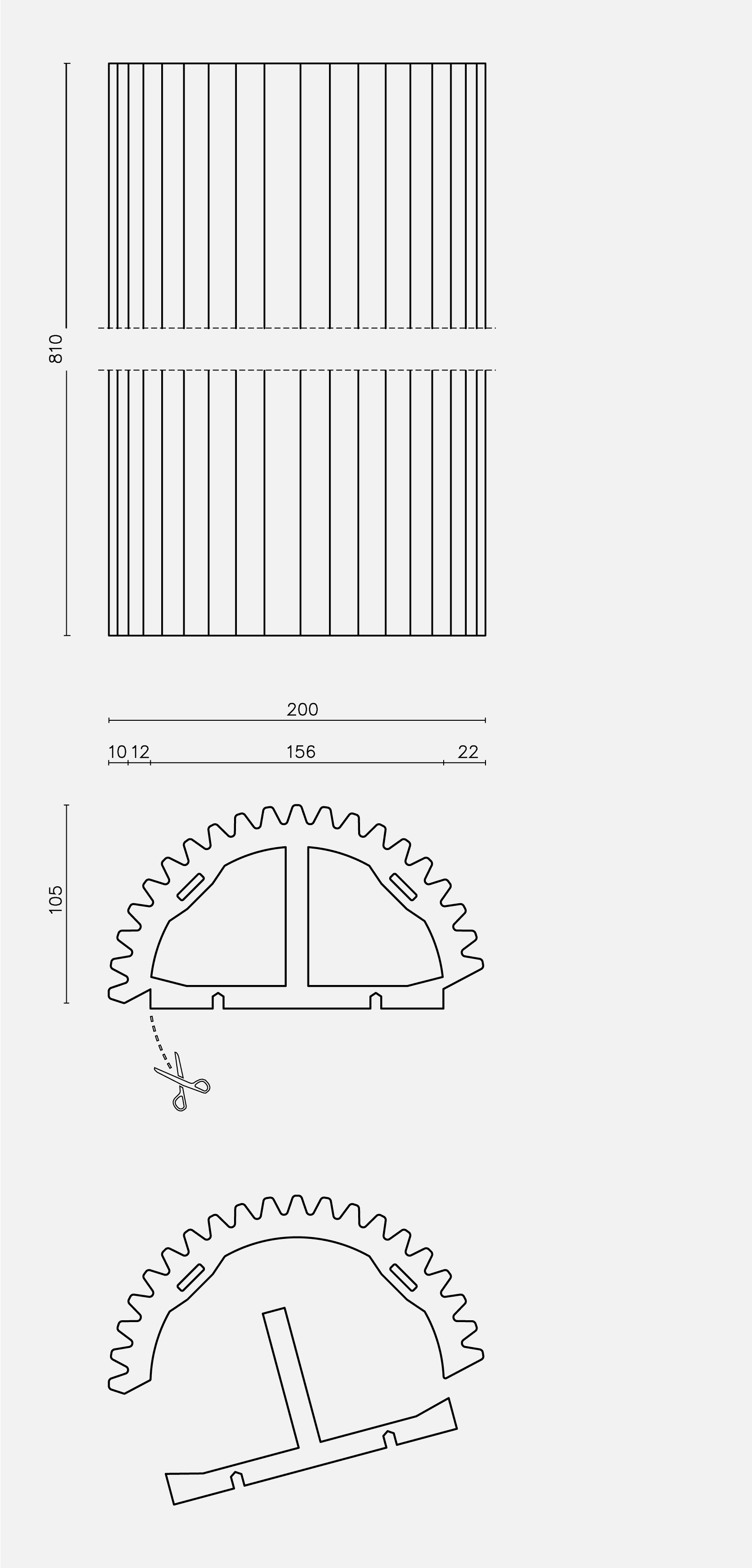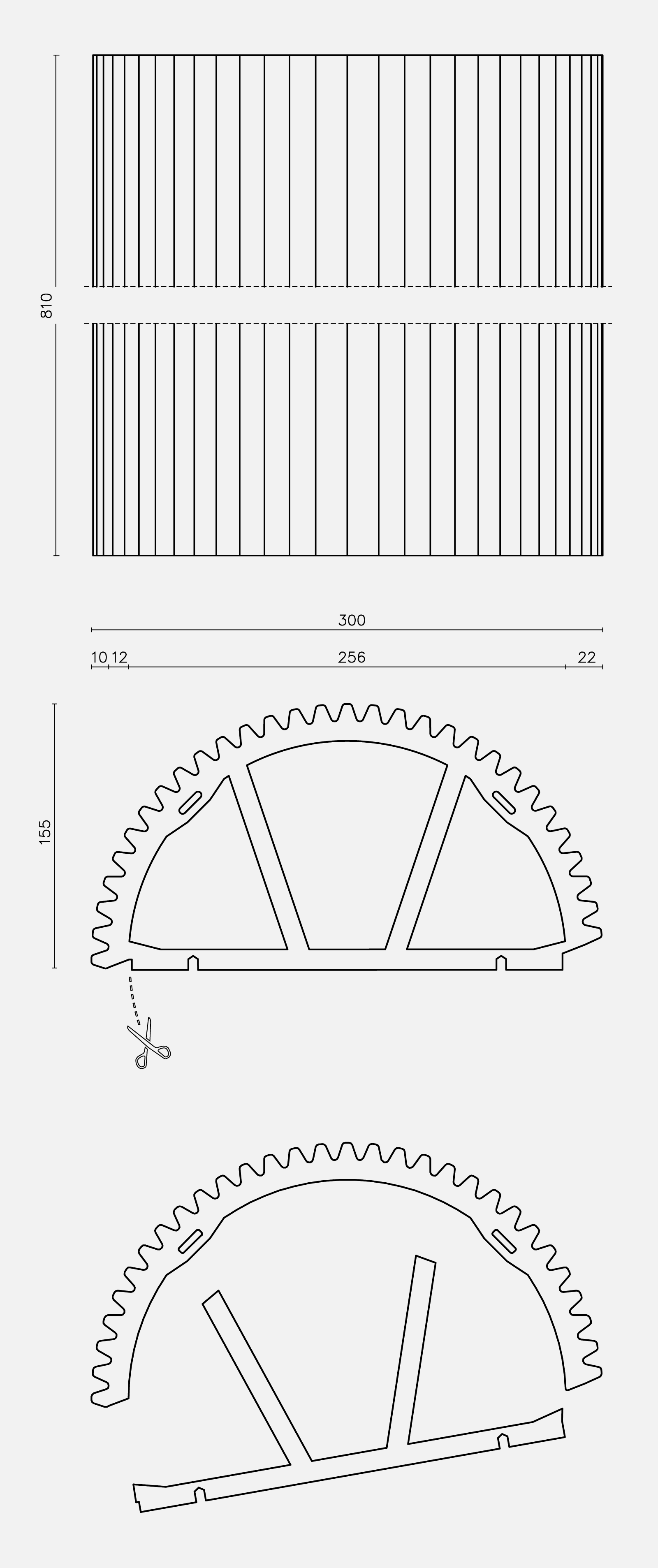 The tiles are of terracotta prepared with clays, fabricated through extrusion, and slow-baked in a tunnel oven. They are executed in semi-circular sections without detail plans and 15 mm thick. The pieces come in two sizes, with diameters of 30 cm and 20 cm, and lengths of 86,7 cm and 81 cm. The tiles are fixed to the surfaces with a substructure of aluminium pieces in L and T shapes. A double-peg piece allows for a high degree of precision in execution.
