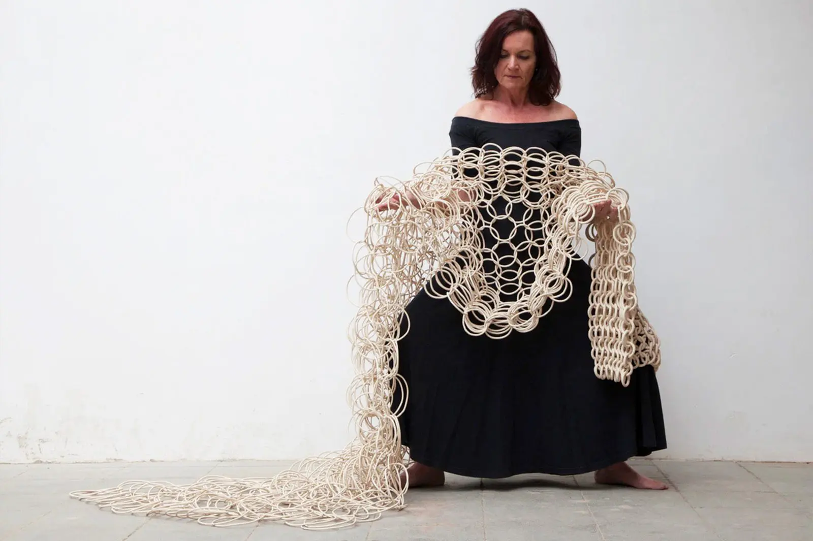Cecil Kemperink’s ceramic sculptures merge her passions for textiles, clay, dance, fashion, and sculpture. These pieces invite interaction, allowing you to see, touch, hear, and experience each work uniquely. Cecil works intuitively, letting her creations evolve in her hands, exploring the apparent contradictions between vulnerability and strength. Inspired by natural rhythms, like waves and day-night cycles, she captures the essence of these movements in her art.
