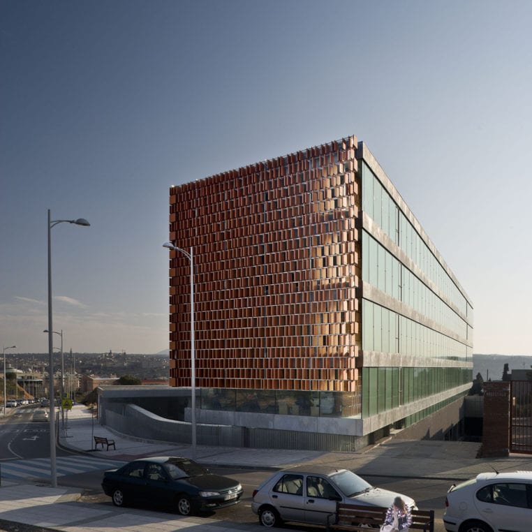 La arquitectura apuesta por un lienzo cerámico, material de gran arraigo en la tradición local, a modo de piel evocadora previa a zonas vidriadas. Presente en el interior y en el exterior del volumen dominante, colabora en el control de la radiación solar y provoca, tamizando la luz, infinidad de transparencias, vibraciones y reflejos diferentes.