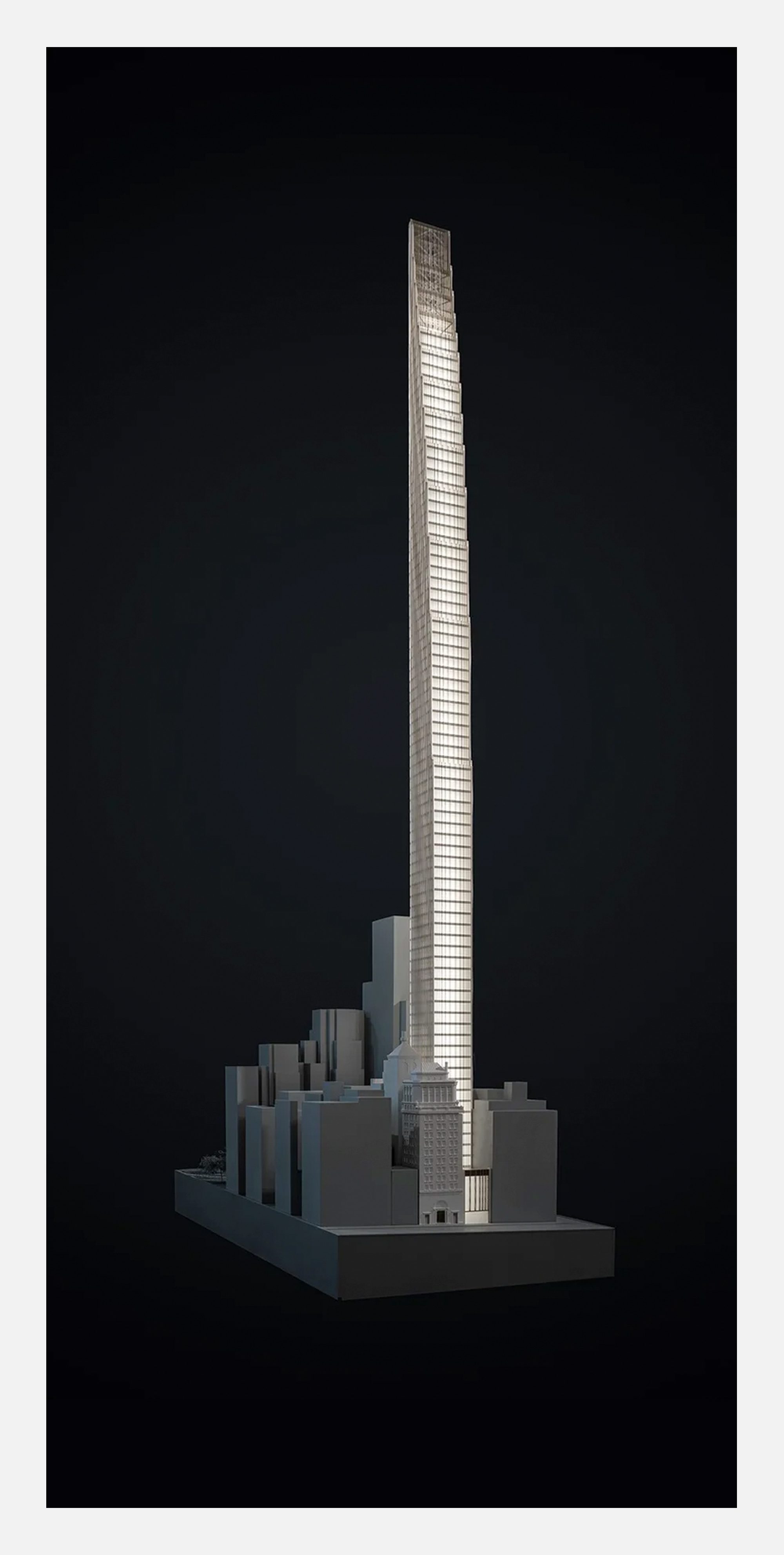 Designed by SHoP Architects, 111 West 57th Street is a supertall residential skyscraper that pushes the limits of what is possible within the Midtown Manhattan zoning envelope. With an extraordinary width-to-height ratio of 1:24, it is considered the world’s skinniest skyscraper, rising to approximately 427 meters in height while measuring only about 13.7 meters wide at its narrowest point. This extreme slenderness gives the tower a striking presence on the New York skyline and makes it the second tallest building in the Western Hemisphere. Supertall skyscrapers are defined as structures measuring between 300 and 600 meters in height, a category into which this tower clearly falls.