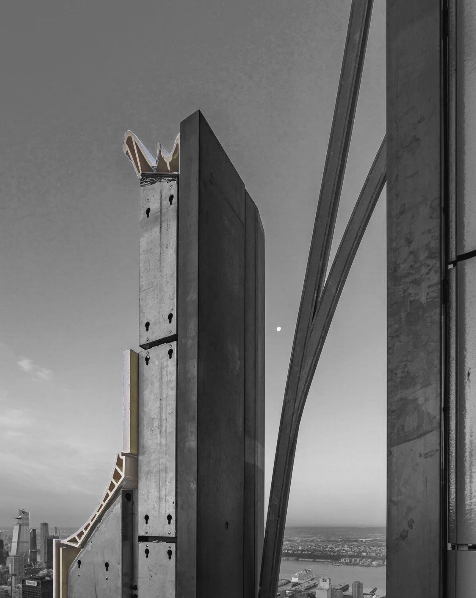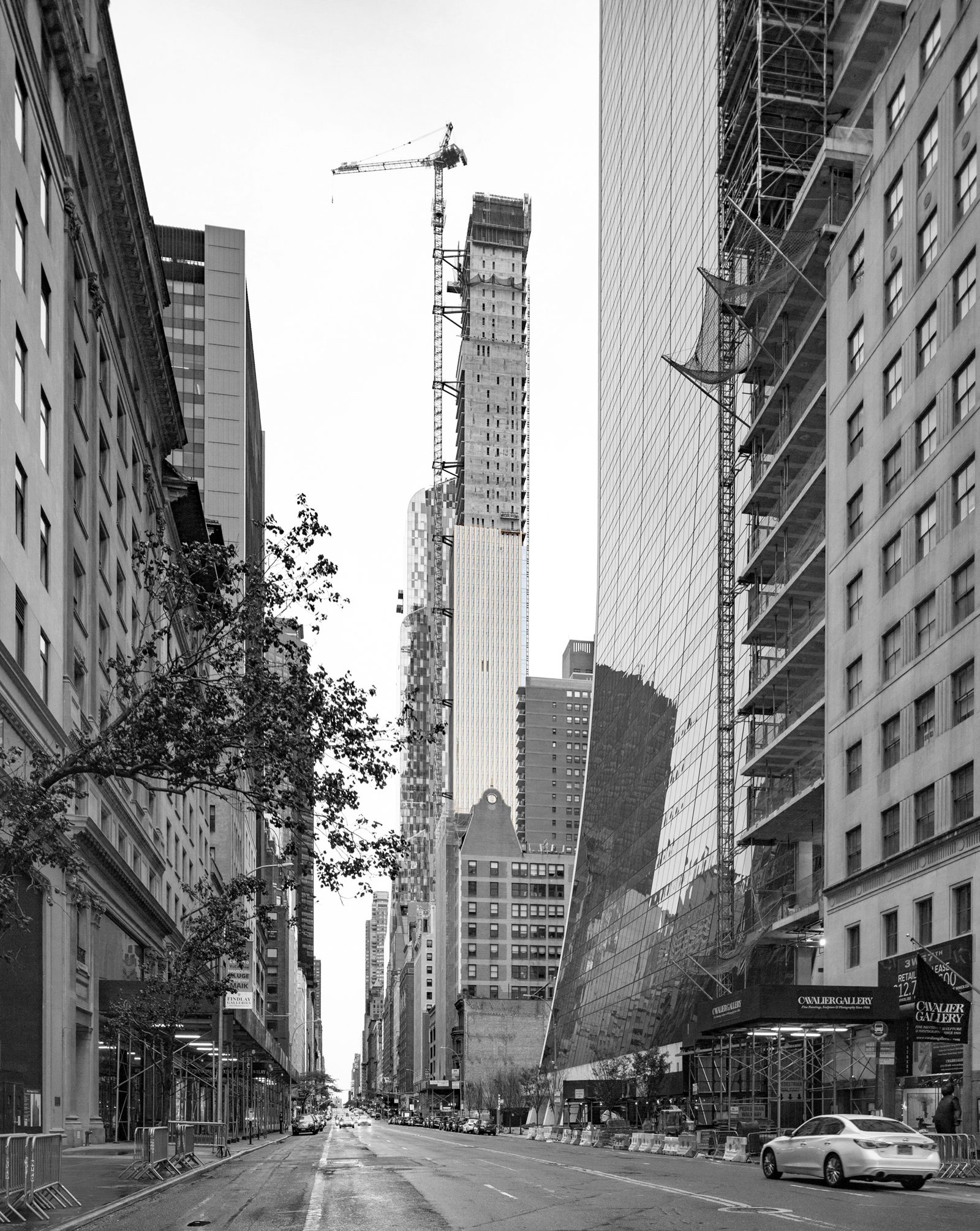 The tower was announced in 2013 and broke ground in 2014, although construction stalled in 2017 for financial reasons before reaching its full height in 2018. According to SHoP Architects, the structure was built using the highest-strength concrete in the world. A major challenge of the project was the development of a façade system capable of supporting the weight of the terra-cotta cladding. Concrete shear walls back the east and west façades, allowing only select punched window openings. These openings incorporate vision glass, while the remaining panels contain shadow boxes within a unitized curtain wall system. The building contains approximately 53,140 m2 of floor area and accommodates one full-floor residence per level, along with 14 additional residences in the adjacent landmarked building, for a total of 60 residences offering panoramic views of Central Park and the surrounding city.